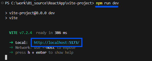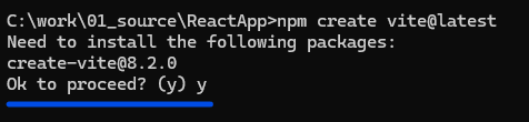 ※「Yes」を選択すると、プロジェクト作成の直後に必要なパッケージのインストール(npm install)と開発サーバーの起動(npm run devまたはnpm start)が自動的に行われます。手動でこれらのコマンドを順番に入力する手間が省け、すぐにコードを書き始める準備が整います。