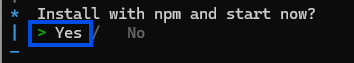 次に、「Install with npm and start now?」と聞かれたら、「Yes」を選択し、Enterを押下。