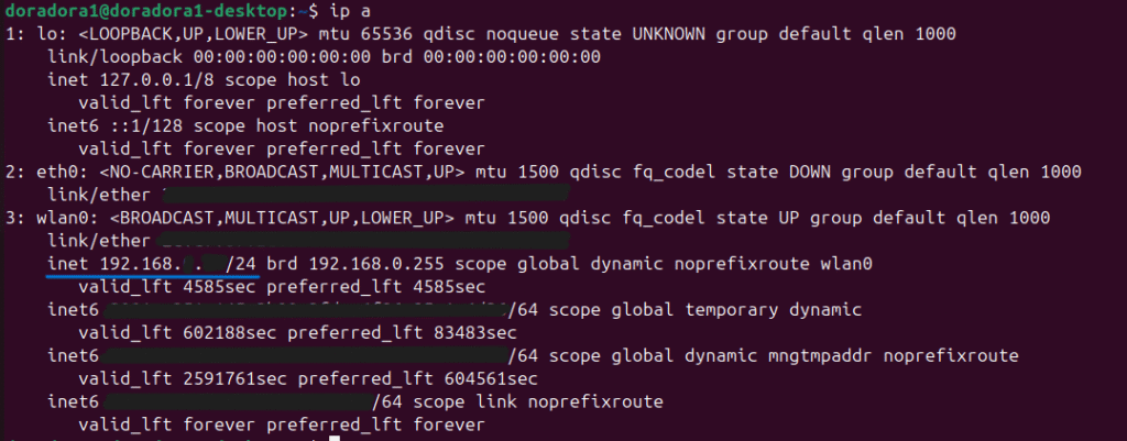 ip a表示されたIPアドレスをこれから使っていきます。(例:192.168.1.10)